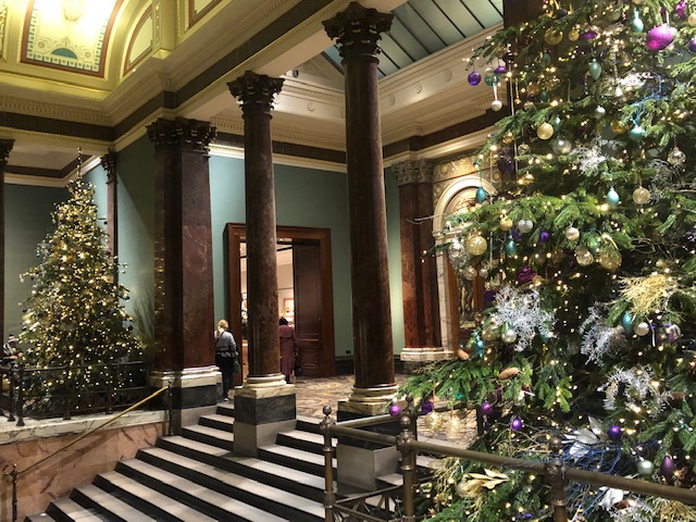 London’s main Christmas tree is located in Trafalgar Square. Here is my advice: Do not get your hopes up. In 2019, it was the most scraggly, oddest, Christmas tree I have ever seen. It was worse than the Christmas tree that was surrounded by rats in New York’s Washington Square Park, which I discuss in Itinerary: New York at Christmas Time. Obviously, you still need to see Trafalgar Square. But, if you want a sure-fire, magical, holiday experience, then reserve a spot at the Savoy Hotel for afternoon tea.